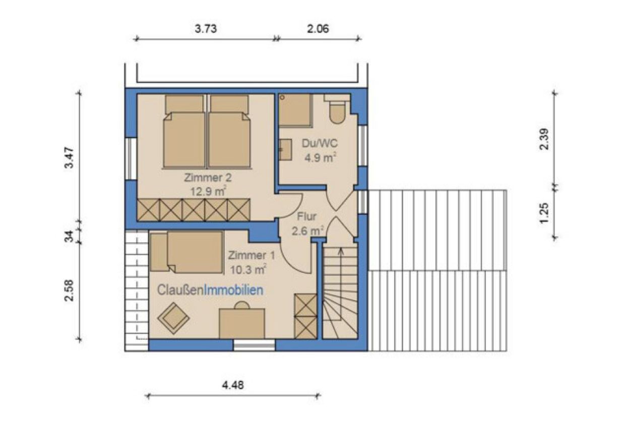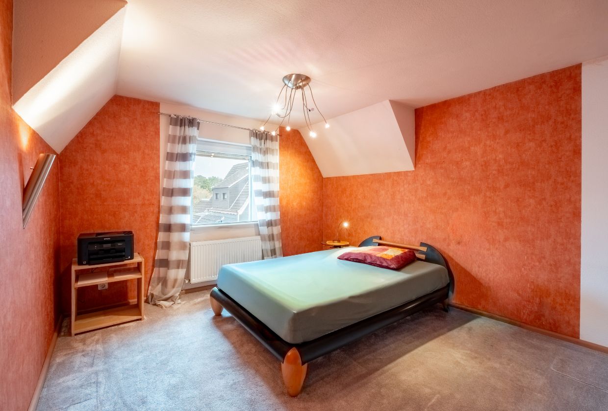 Im Obergeschoss stehen zwei Zimmer zur Verfügung, die flexibel als Schlafzimmer, Gästezimmer oder Arbeitsbereich genutzt werden können. Beide Räume bieten ausreichend Platz für individuelle Einrichtungsideen und profitieren von der ruhigen Lage des Hauses. Ein modernes Duschbad auf derselben Etage schafft zusätzlichen Komfort und macht die Zimmer zu angenehmen Rückzugsorten.