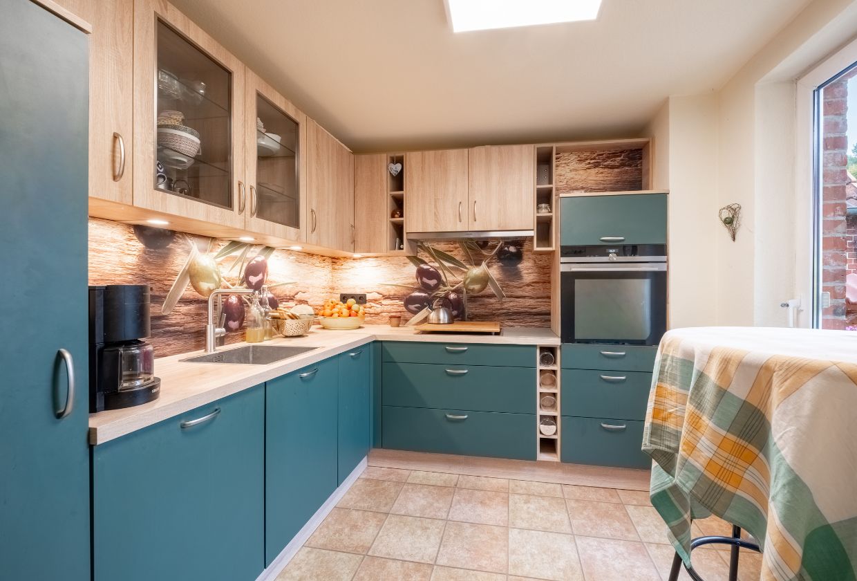Die moderne Einbauküche wurde erst 2022 erneuert und präsentiert sich in einem sehr gepflegten, zeitgemäßen Zustand. Sie bietet alle wichtigen Geräte, durchdachte Stauraumlösungen und lädt sowohl zum alltäglichen Kochen als auch zu gemeinsamen Kochabenden ein. Dank ihrer klaren Linienführung und der hellen Gestaltung wirkt der Raum freundlich und funktional.