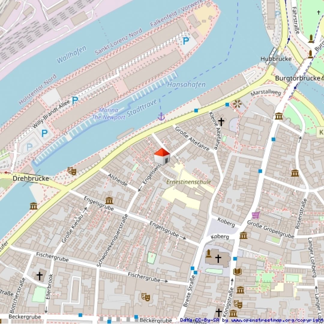 Das Altstadthaus liegt im Herzen der historischen Lübecker Altstadt, einem UNESCO-Welterbe, in ruhiger und dennoch zentraler Lage auf der Altstadtinsel. Die Straße Engelswisch ist geprägt von sorgfältig restaurierten, denkmalgeschützten Gebäuden und strahlt das unverwechselbare Flair der traditionsreichen Hansestadt aus. Bedeutende Sehenswürdigkeiten wie das weltbekannte Holstentor, die Trave-Uferpromenade oder die eindrucksvollen Altstadtkirchen liegen nur wenige Schritte entfernt.