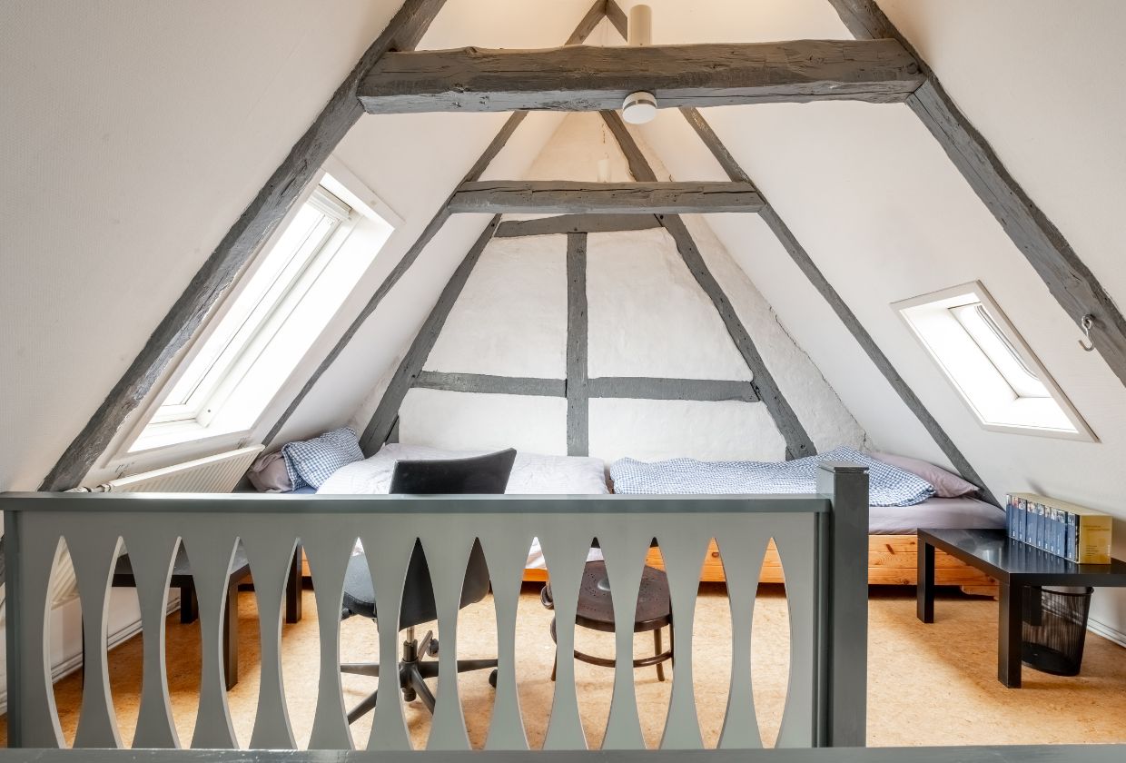 Im Dachgeschoss befindet sich ein weiterer Wohnraum, der durch die typische Altstadthaus-Atmosphäre geprägt ist. Sichtbare Balken, große Fenster und die besondere Raumhöhe machen ihn zu einem gemütlichen Rückzugsort.