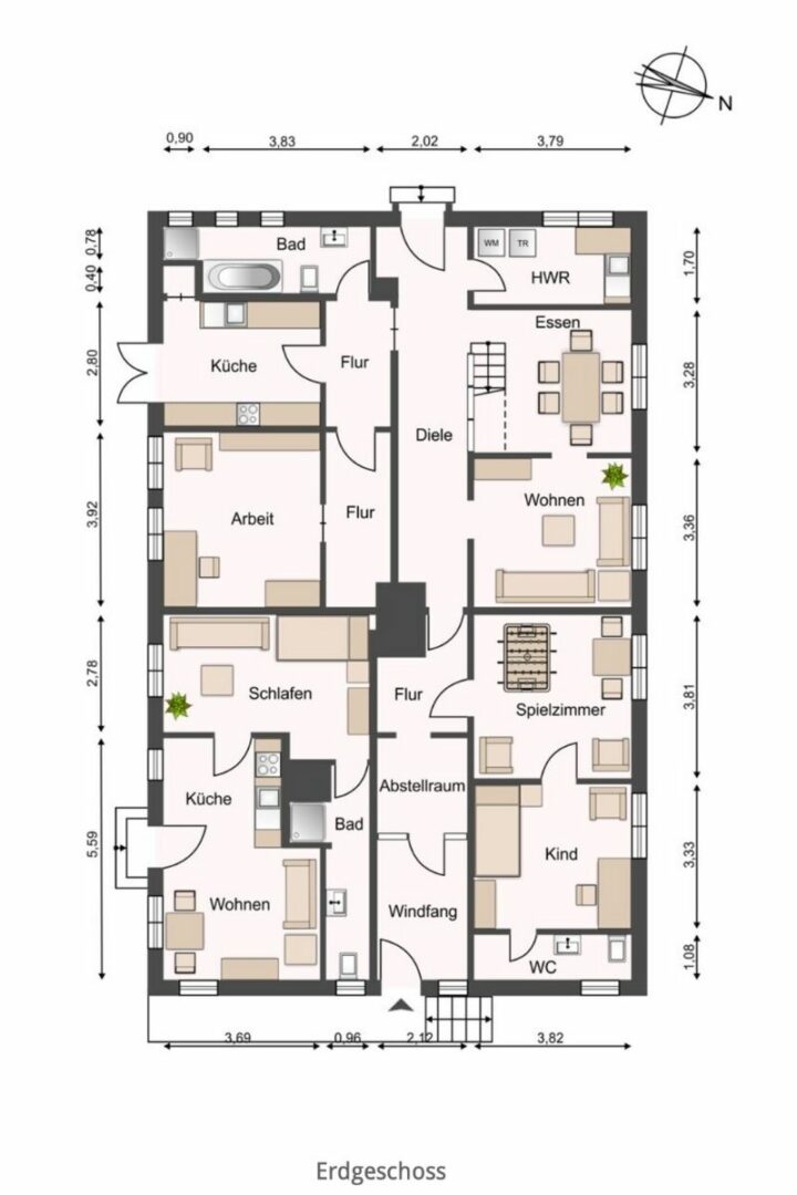 Das historische Reetdachhaus besticht durch seine großzügige und flexible Aufteilung. Die Hauptwohnung erstreckt sich über Erd- und Dachgeschoss und bietet viel Platz für Familie und Gäste. Zusätzlich gibt es eine charmante Einliegerwohnung mit eigenem Eingang, die derzeit langfristig vermietet ist – ideal als sichere Einnahmequelle oder für zukünftige Nutzungsmöglichkeiten. Jeder Raum der Hauptwohnung lädt dazu ein, persönliche Wohnträume zu verwirklichen.