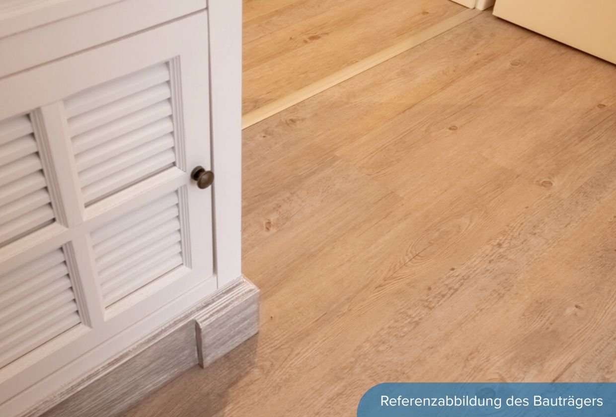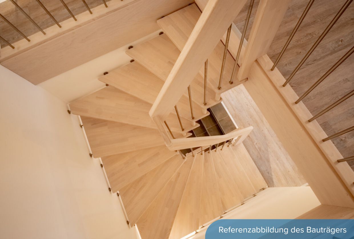 Das Wohnzimmer ist hell, freundlich und großzügig geschnitten. Große Fenster lassen den Raum ganztägig in Tageslicht baden und schaffen eine offene, luftige Atmosphäre. Hier ist genug Platz für gemütliche Sofaecken, einen Essbereich oder individuelle Einrichtungsideen. Vom Wohnzimmer aus gelangen Sie direkt auf die nach Süden ausgerichtete Terrasse.