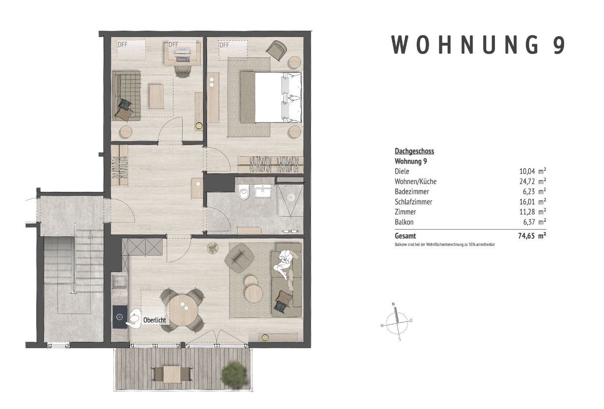 Ihr Ausbauprojekt: Baugenehmigung für eine 3 Zimmer Dachgeschosswohnung mit Südbalkon im 4. Obergeschoss